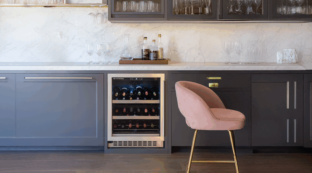 Nos modelos maiores, como o Elettromec Connect 135L, aproveite as divisões para armazenar vinhos e espumantes com temperatura ideal.