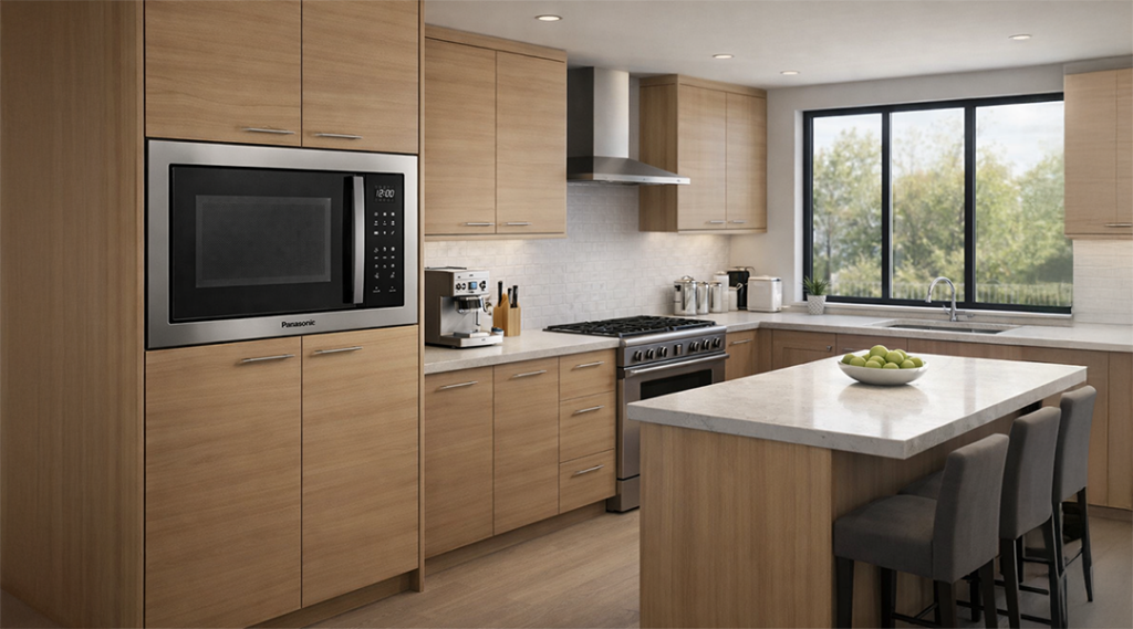 O micro-ondas Panasonic de embutir 30 litros oferece programas automáticos que simplificam o preparo. Por isso, ele é ideal para refeições rápidas e equilibradas.